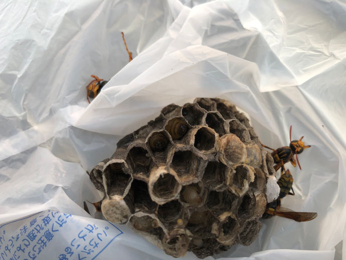 8/8 蜂の巣駆除を行ってきました。 場所:奈良県葛城市 種類:セグロアシナガバチ サイズ:10センチ以内 最近、給湯器の中で巣を作る蜂に良くでいます。 複数のハチをみかけるようになりましたら 近くに「蜂の巣」があるかもしれません...